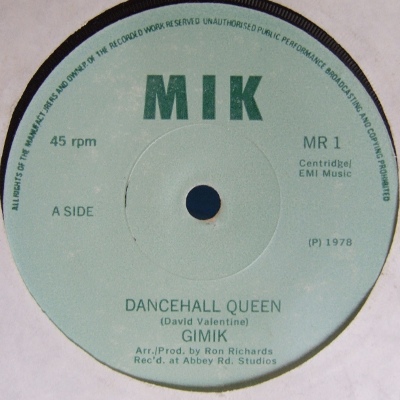 Notes: "Dancehall Queen" was demoed by David Valentine in REL Studios in Edinburgh in the mid-70s. Valentine's then manager was David Knights (original bassist with Procul Harum, appearing on their first 3 LPs) who somehow managed to get the song covered by Gimik. Valentine was later in Dillinger and R.A.F. who released material on A&M Records but he never released a version of this song himself. In fact, Gimik's is the only released recording of this song.