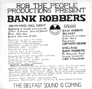 Bankrobbers (one word, no preceding The) formed in Belfast in 1980. Drummer Seamus O'Neill worked part-