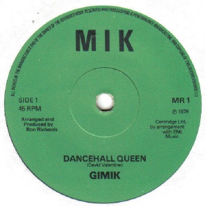 Notes: "Dancehall Queen" was demoed by David Valentine in REL Studios in Edinburgh in the mid-70s. Valentine's then manager was David Knights (original bassist with Procul Harum, appearing on their first 3 LPs) who somehow managed to get the song covered by Gimik. Valentine was later in Dillinger and R.A.F. who released material on A&M Records but he never released a version of this song himself. In fact, Gimik's is the only released recording of this song.