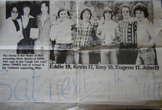 Gimik supported The Bay City Rollers on their Irish tour in 1976.