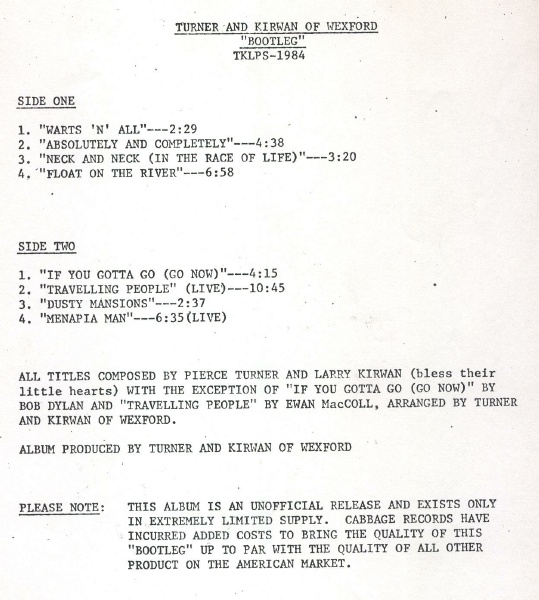 for the debut LP. Given how little Turner & Kirwan released in their lifetime,
